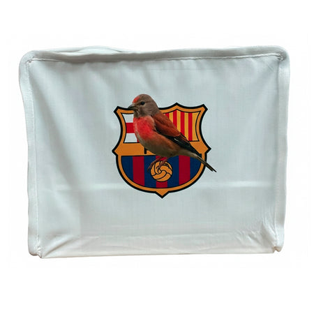 Funda para jaula C2 con diseño de pardillo acompañado del escudo del FC Barcelona. Proporciona sombra, tranquilidad y estilo a tu jaula de concurso o uso diario. Confeccionada en tela resistente y lavable, se adapta perfectamente a las medidas estándar del modelo C2.