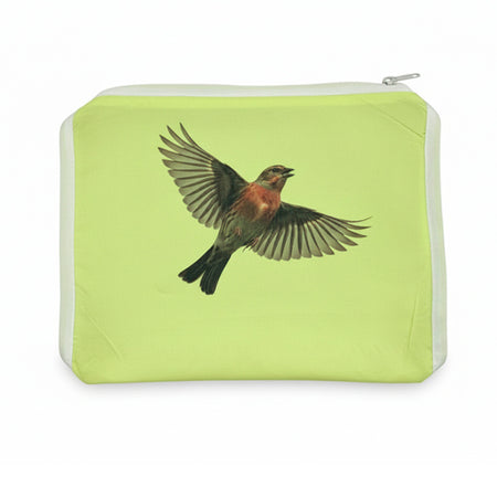 Esta funda para jaula C2 destaca por una ilustración elegante de un pardillo en pleno vuelo, capturando su postura natural y la amplitud de sus alas. El fondo aporta frescura y un estilo alegre que combina perfectamente con el diseño del ave.