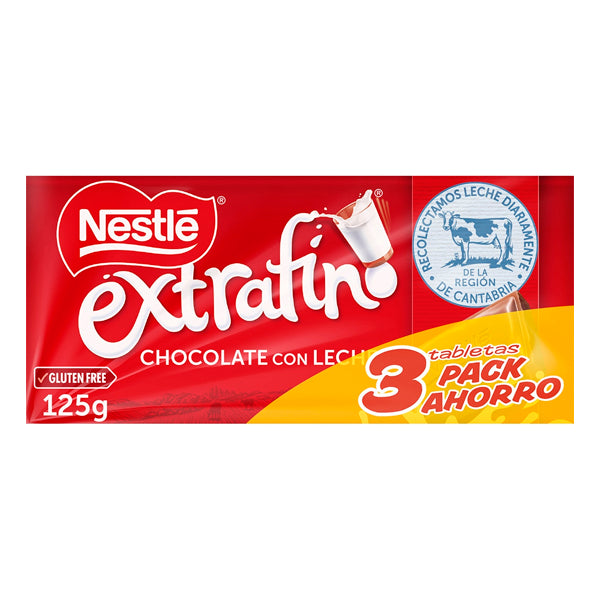Nestlé Extrafino Chocolate con Leche Sin Gluten, 3 Tabletas de 125g
